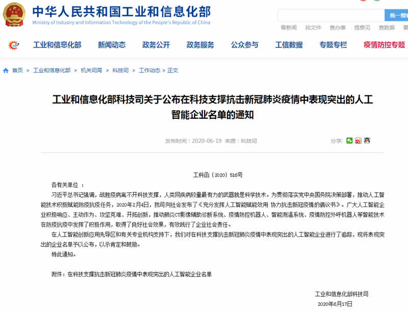 工信部點贊AI人體測溫系統企業名單