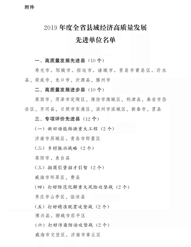 為表彰先進,進一步激發(fā)縣域經(jīng)濟發(fā)展活力,增強縣域經(jīng)濟發(fā)展動力,經(jīng)研究決定,對2019年度10個“G質(zhì)量發(fā)展先進縣”、10個“G質(zhì)量發(fā)展進步縣”及12個“專項評價先進縣”進行通報表彰。