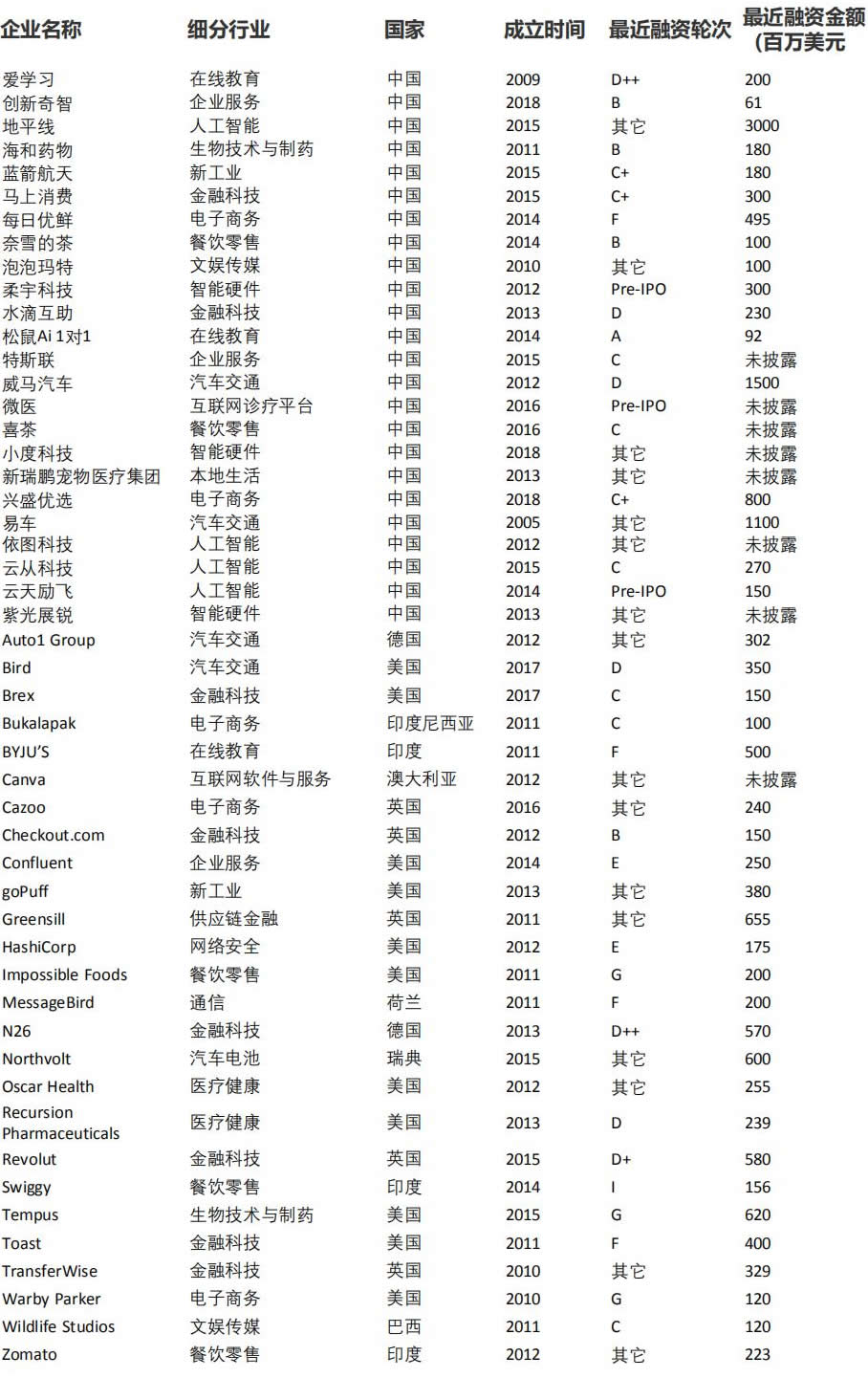 100家公司中,醫(yī)療保健,企業(yè)服務,制造,硬件和電子商務在行業(yè)方面排名前五,分別囊括18、17、16、12、8家企業(yè),2020孕育了多的醫(yī)藥公司
