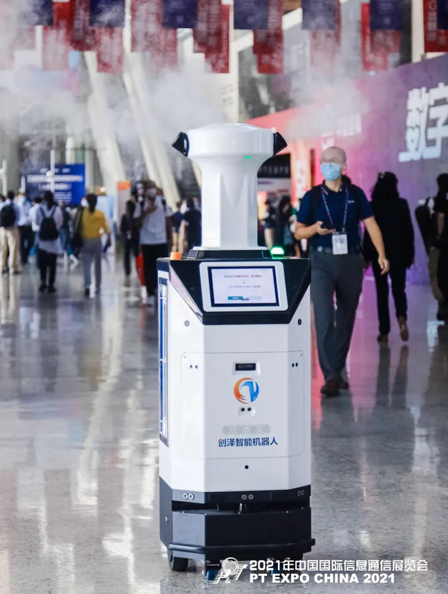 本屆PT展包含展覽、論壇、活動三個板塊,旨在為全行業(yè)搭建展示、交流、合作、共享的綜合性平臺,充分展示信息通信L域新興技術和應用創(chuàng)新成果,分享優(yōu)秀經驗和成功案例,促進信息通信L域交流與合作。創(chuàng)澤集團受邀攜旗下智能黨建機器人、智能消毒機器人亮相本次展會,在現場擔任不同的“角色”提供全場景智能化服務。