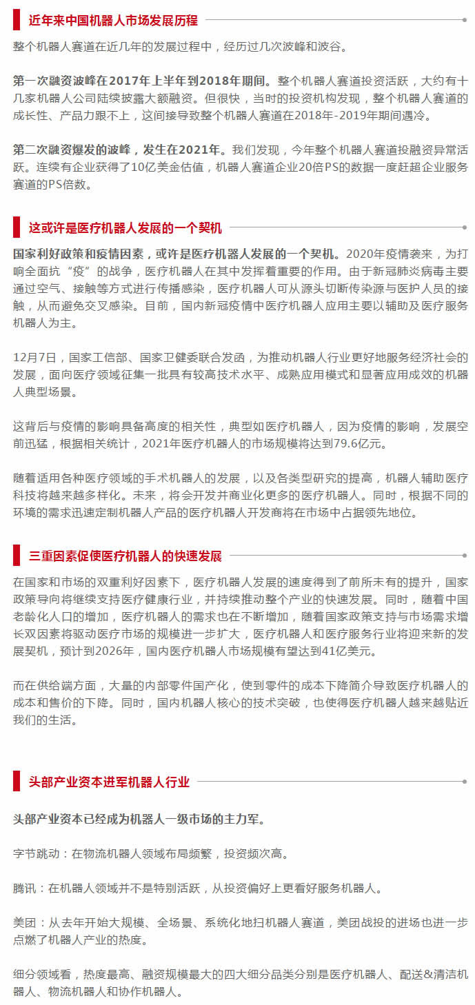 數據統計發現,2021年細分L域融資金額和筆數G的均為服務機器人類企業,而醫療機器人緊隨其后。